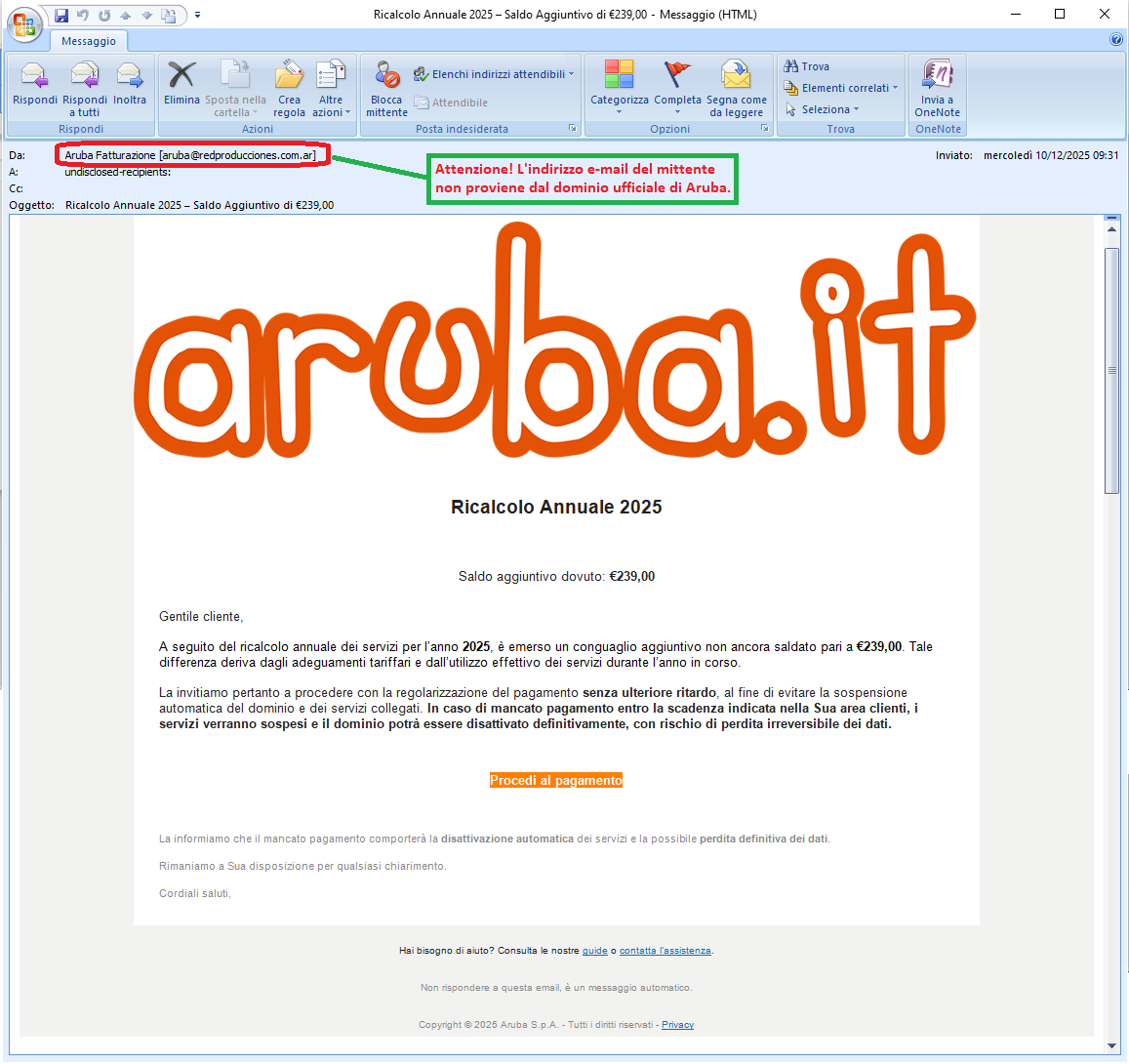 10 Dicembre 2025 ==> Phishing Aruba - Conguaglio annuale