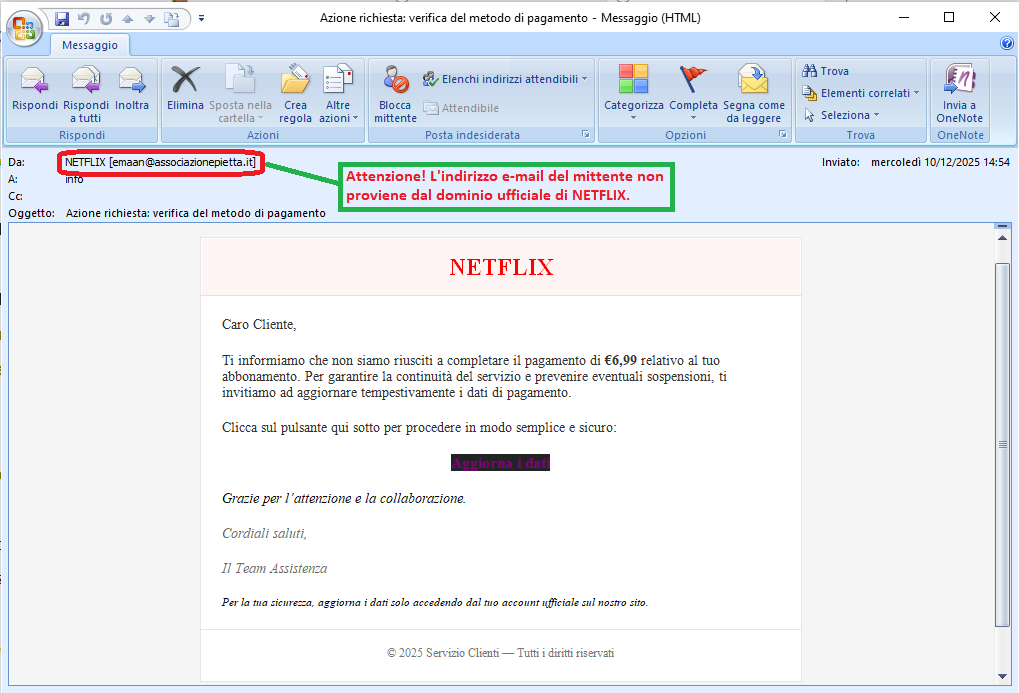 10 Dicembre 2025 ==> Phishing NETFLIX