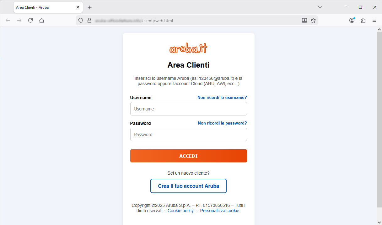 Aruba, in quanto il cybercriminale ha avuto l’accortezza grafica di inserire il logo della nota azienda, notiamo che l’indirizzo/dominio è anomalo: