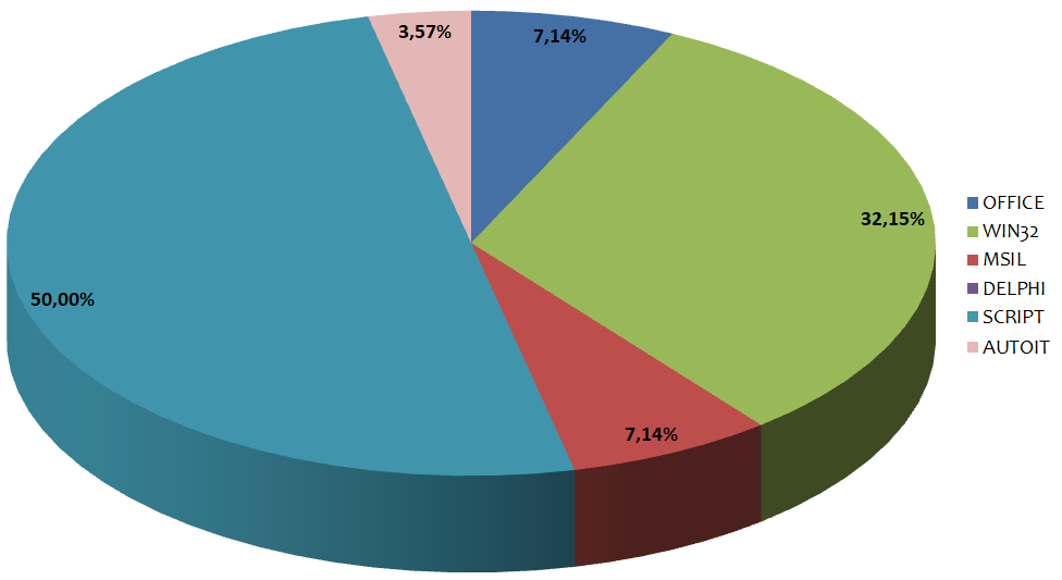 In third and fourth place are MSIL executable files and Office documents (Word, Excel, PowerPoint) with 7.14% each.