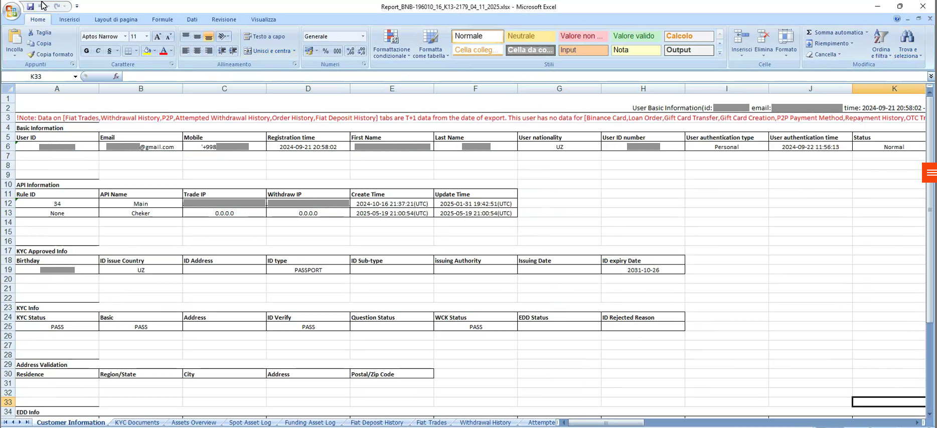Interestingly, the Excel report document is dated November 4, 2025, and the strange coincidence with Uzbekistan.