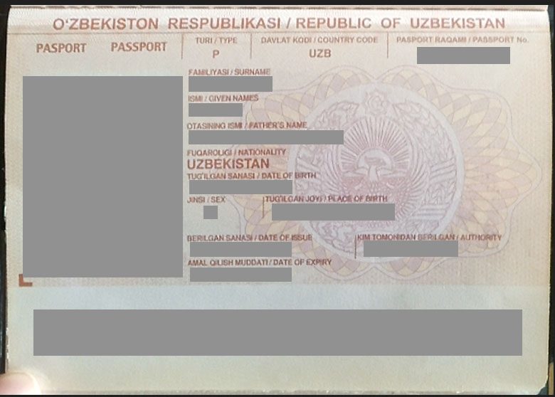 The document also contains a scan of the passport, which we have blurred below for privacy reasons: