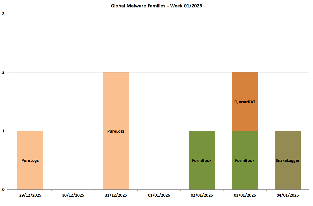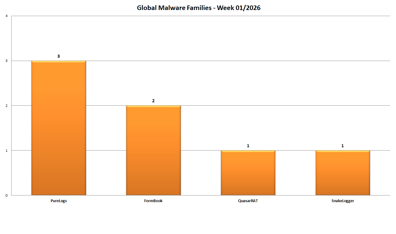 The week was characterized by Password Stealer of the Families: FormBookPureLogsQuasarRAT and SnakeLogger.