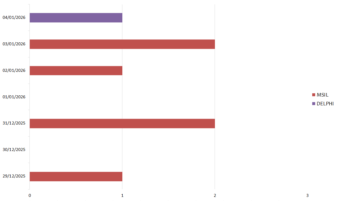 Instead in this graph we see the distribution based on malware family. In the past week 4 different families were detected: