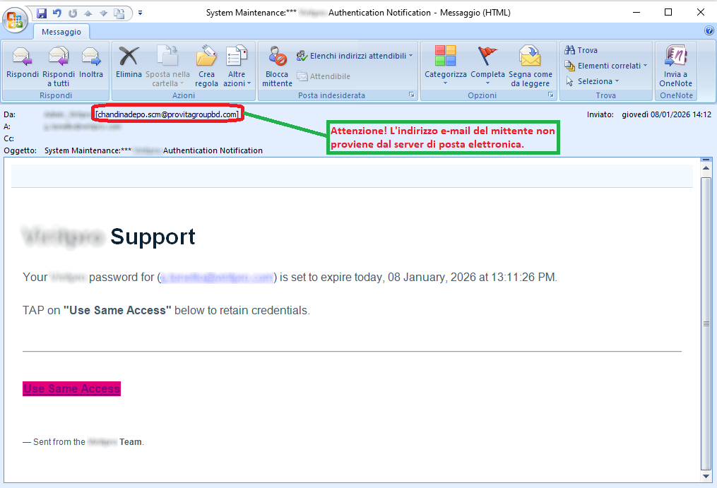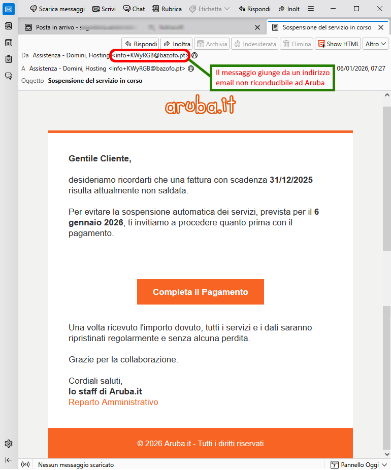 26 January 2026 ==> Phishing Aruba - Service suspension