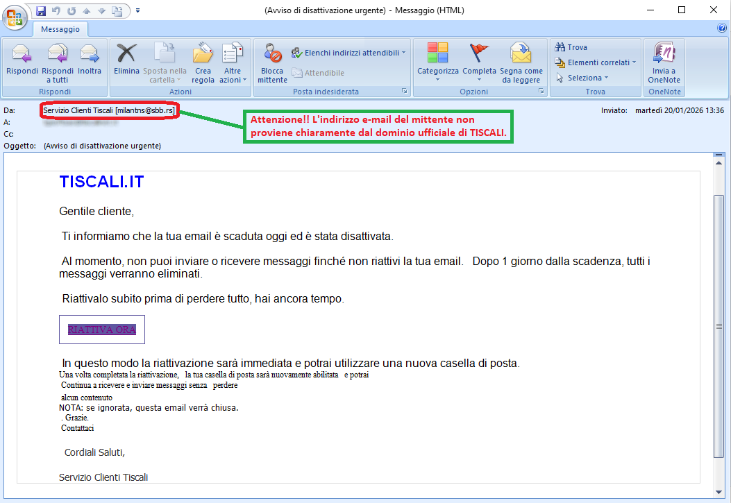 20 January 2026 ==> Phishing Tiscali