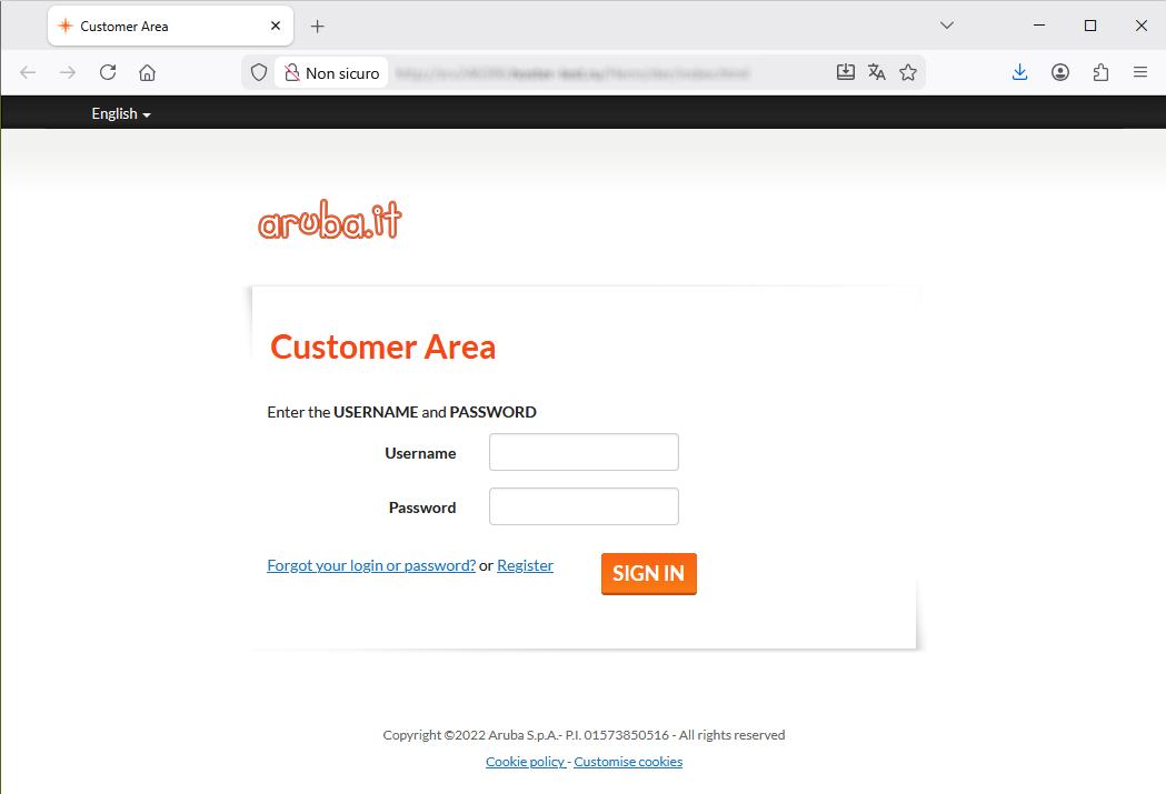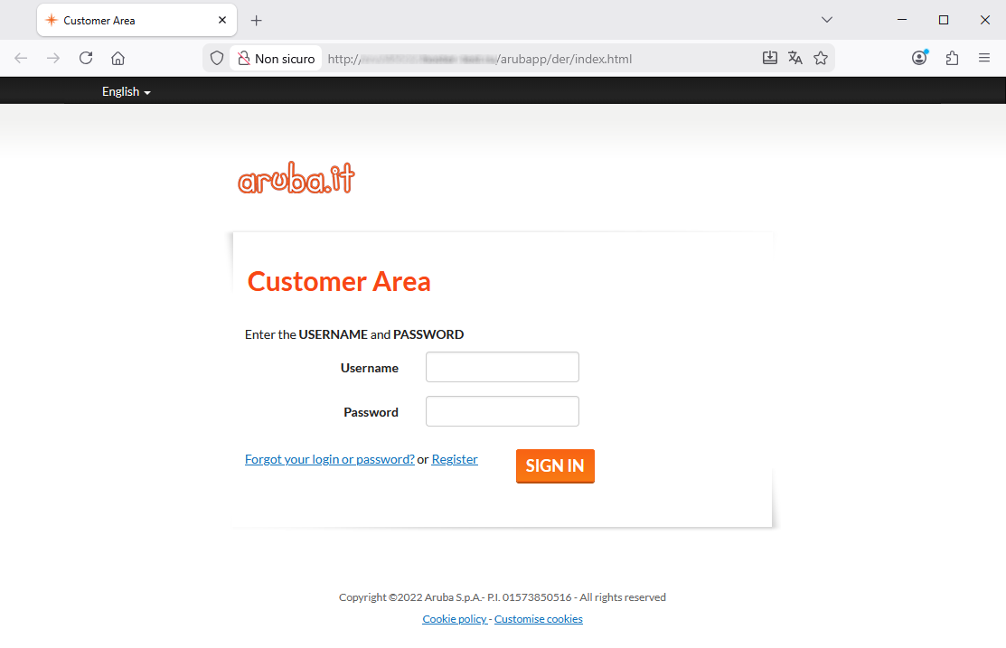 Aruba account login page - due to the presence of the well-known company's logo - has an abnormal address/domain: