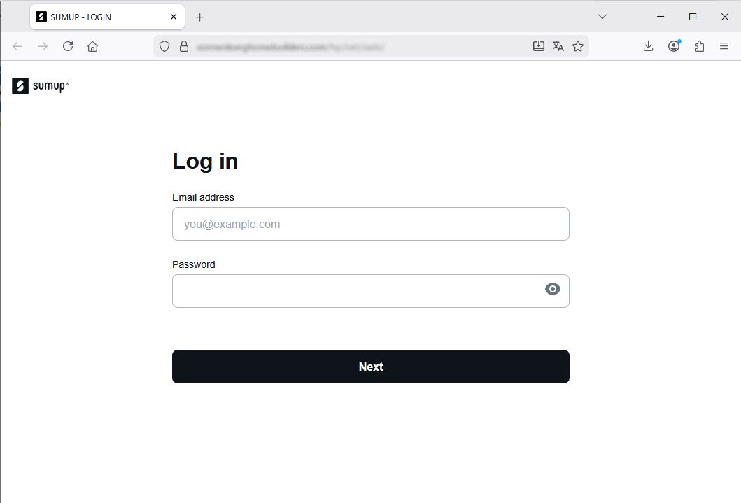 SumUp account login page, as the cybercriminal has had the foresight to insert the well-known company's logo, hasna abmormal address/domain: