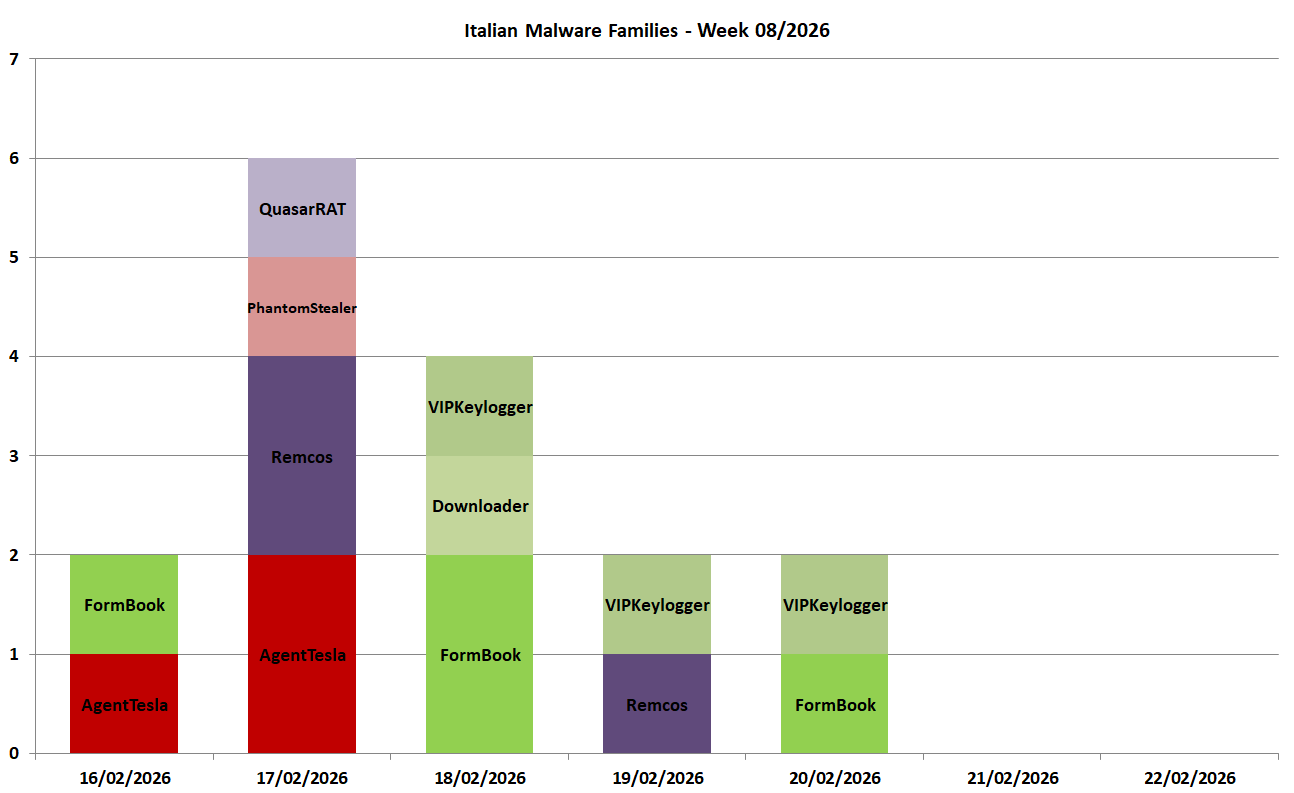 2026W08 Weekly report => 16/02 2K26 - 22/02 2K26 MalSpam campaigns targeting Italy