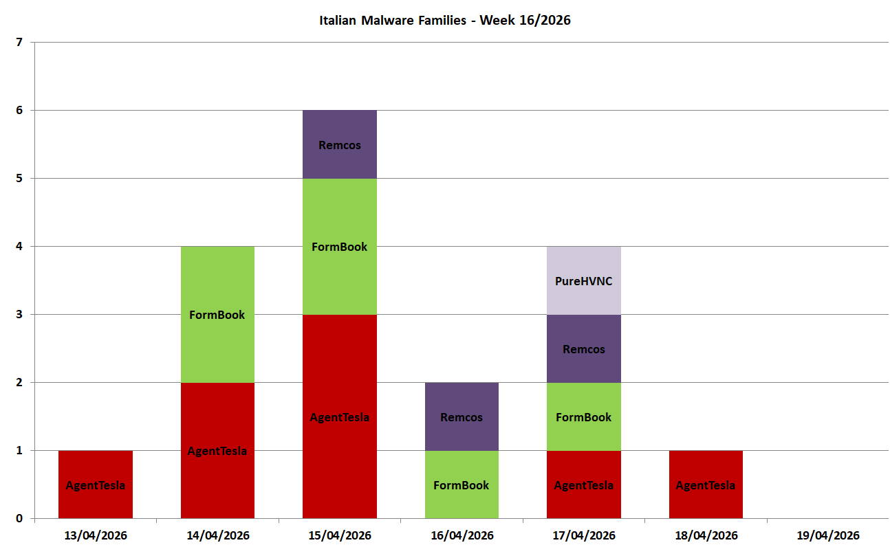 2026W16Weekly report => 13/04 2K26 - 19/04 2K26 MalSpam campaigns targeting Italy